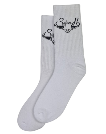 Chaussettes blanches mi-mollet avec logo tricoté